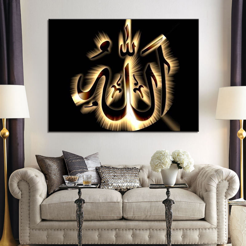 Allah Wall Decorative Oil Painting Colorful Mosque Art Canvas Print Muslim Islamic Home Decor for Living Room Watercolor Medium