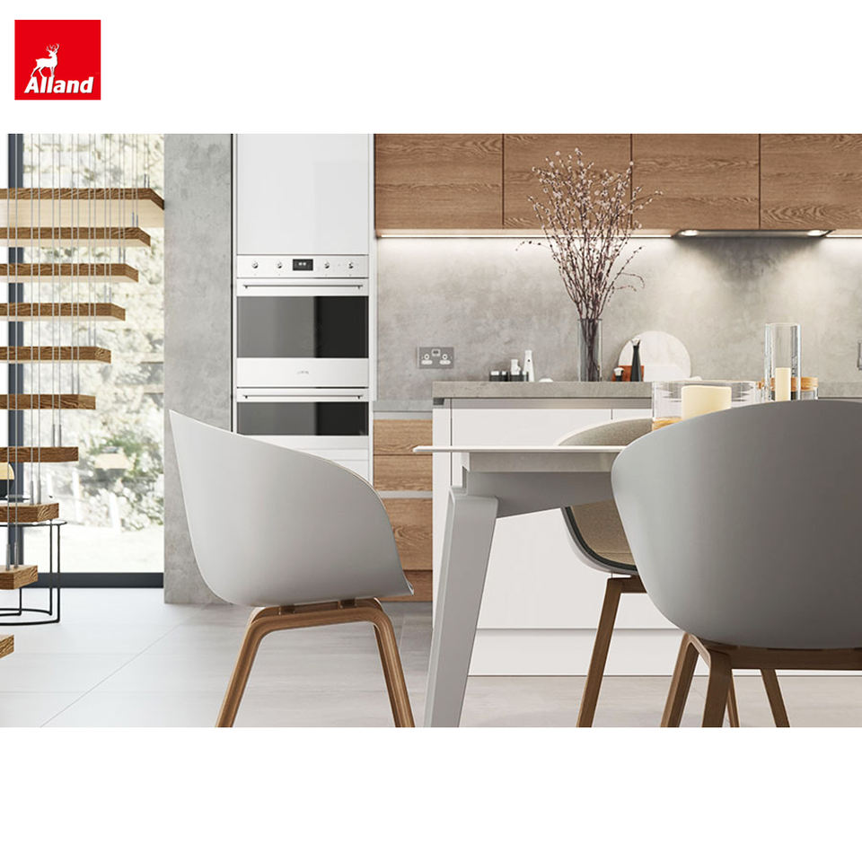 Lacquer High Gloss and Wood Grain L Shape Kitchen Cabinet