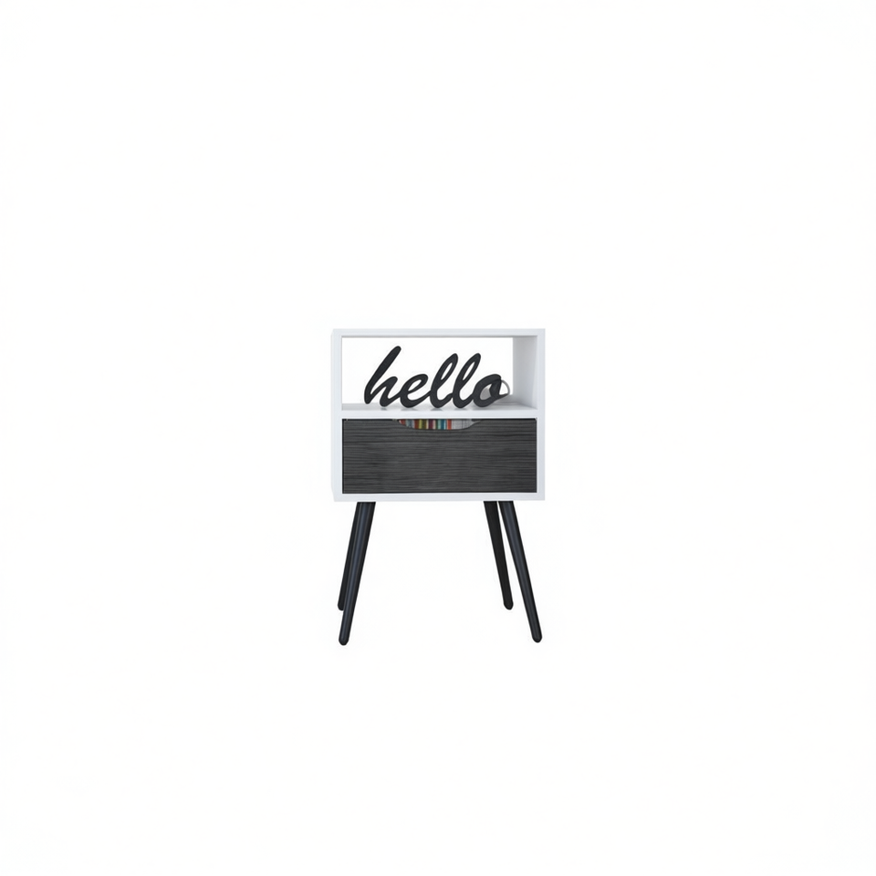 Comodino Allie con ripiano aperto e un cassetto, elegante mobile da camera da letto moderno, design in legno massello