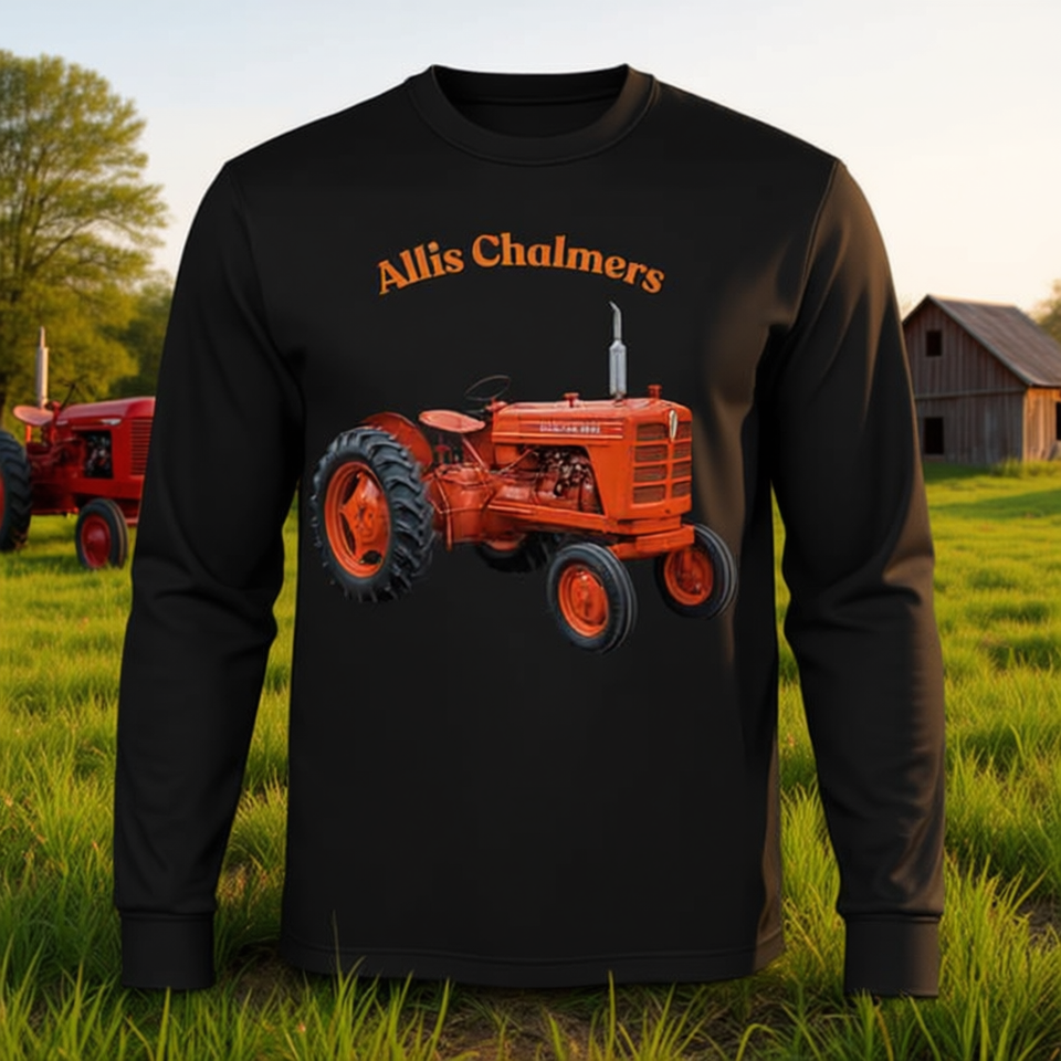 T-shirt a maniche lunghe Allis Chalmers Tractor con design vintage per l'agricoltura
