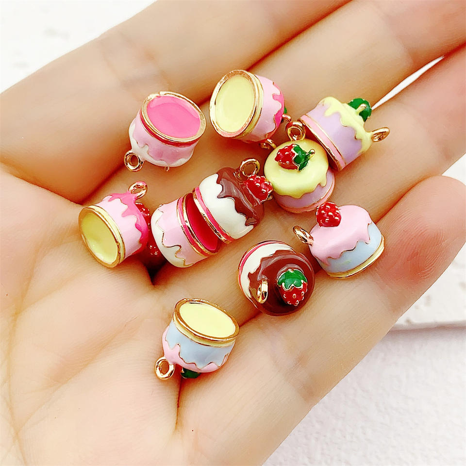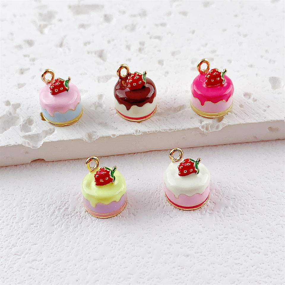Ciondolo in lega di colore smalto alla fragola e cioccolato torta di compleanno cibo dolce ciondolo ciondoli per creazione di gioielli fai da te