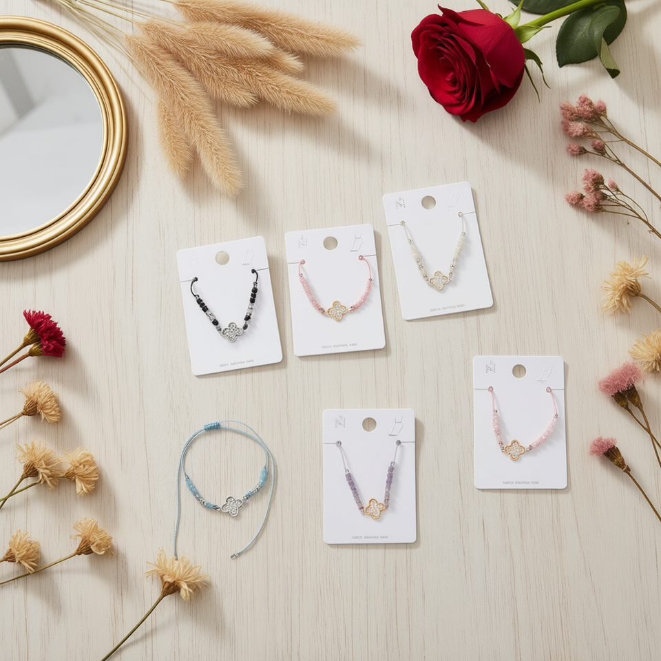Cavigliera in lega a forma di quadrifoglio, 1 pezzo per colore, scatola da 600 pezzi, gioielli alla moda per donna