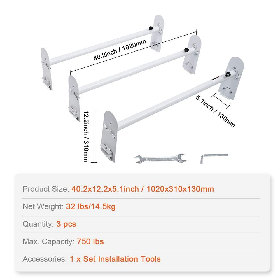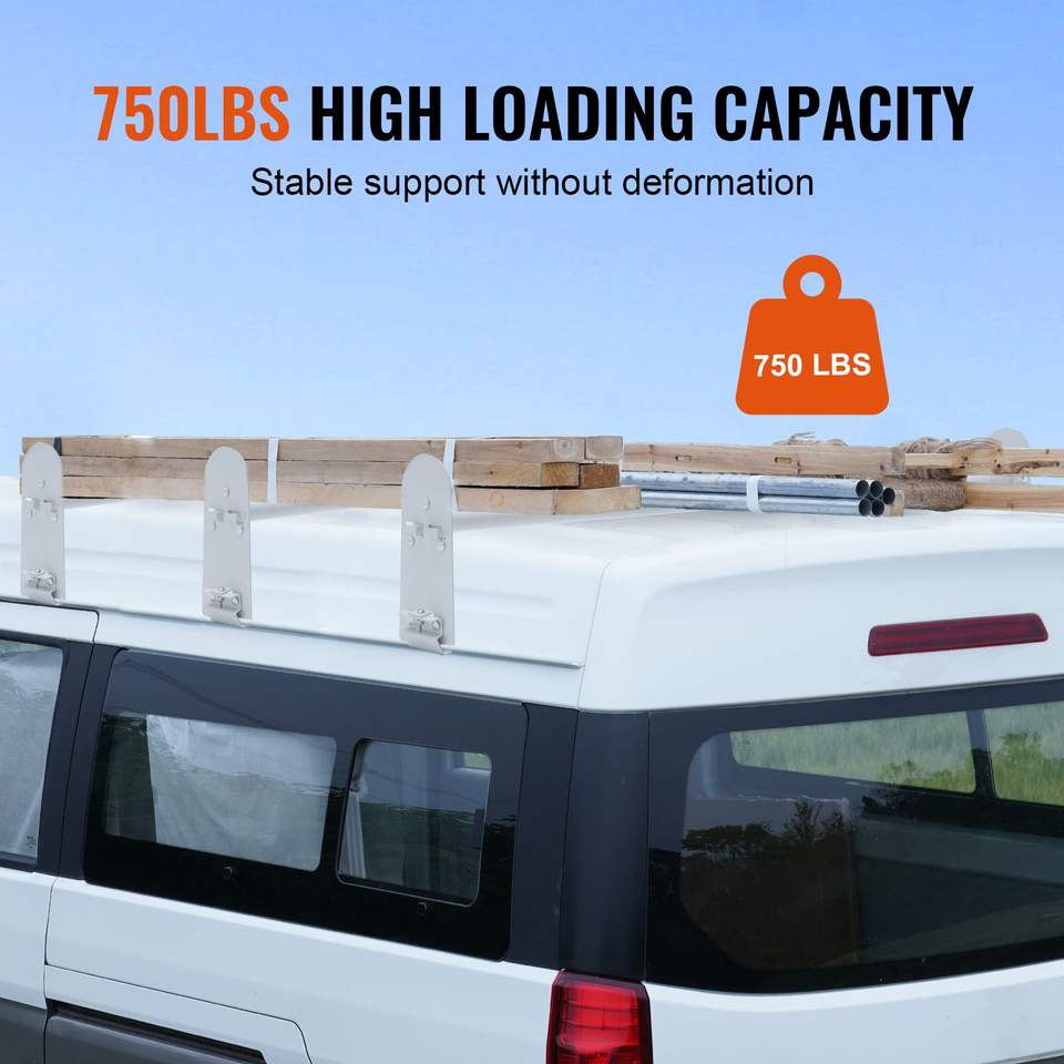 Portapacchi da Tetto in Acciaio Legato a 3 Barre, Capacità 750 LBS, con Gutter Guard e Lunghezza Regolabile 40.2-74.8 Pollici per Auto