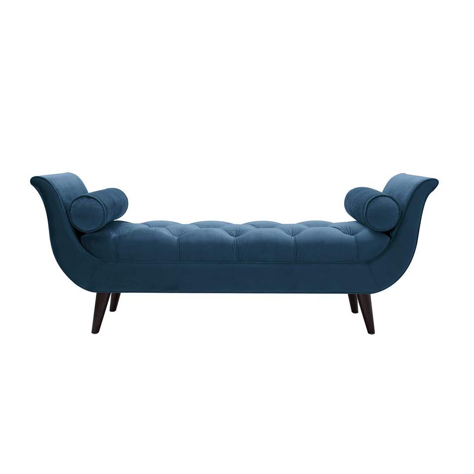 Panca ingresso Alma braccio svasato in raso blu velluto Tufted mobili camera da letto