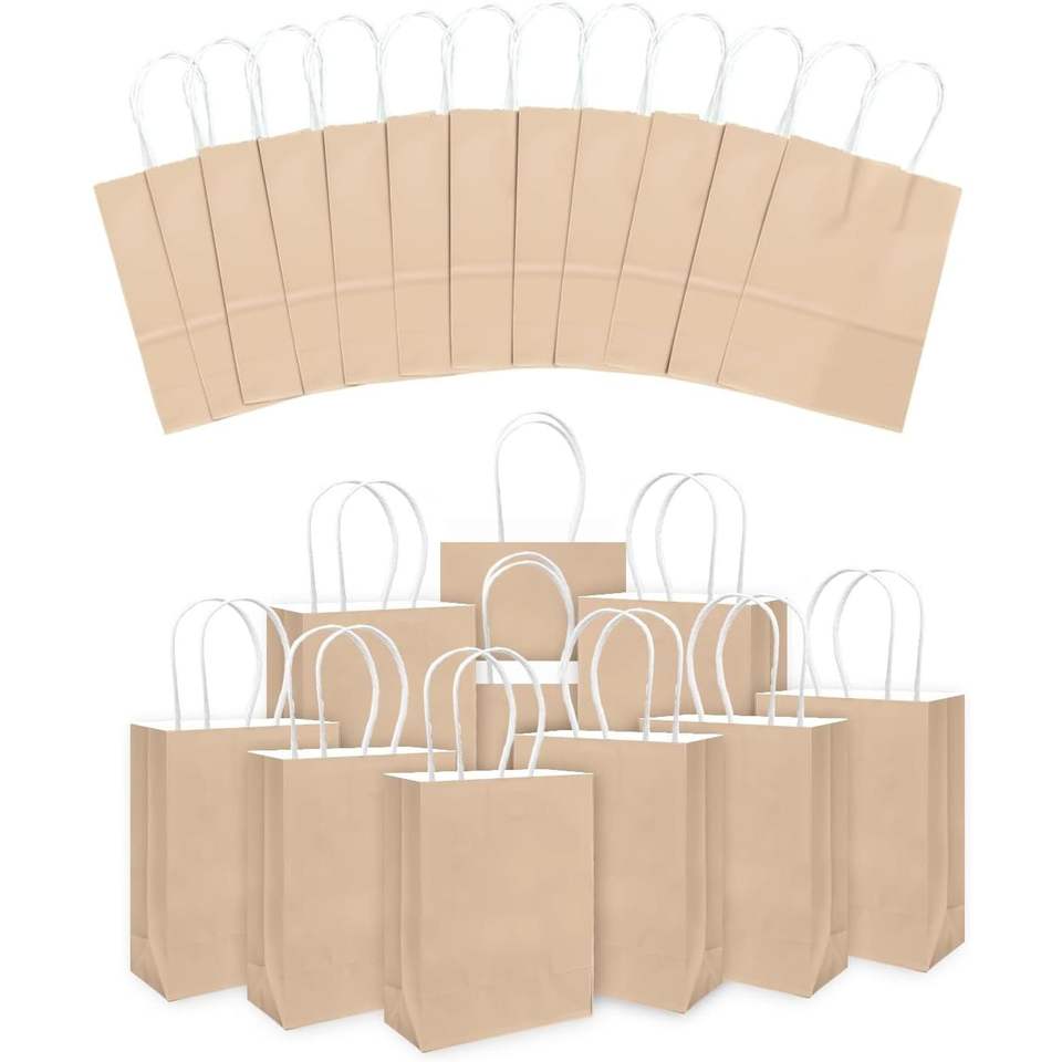Sacchetti Regalo in Carta Giallo Mandorla 30 Pezzi, Misura Media con Manici 28x13x20 cm, Multiuso
