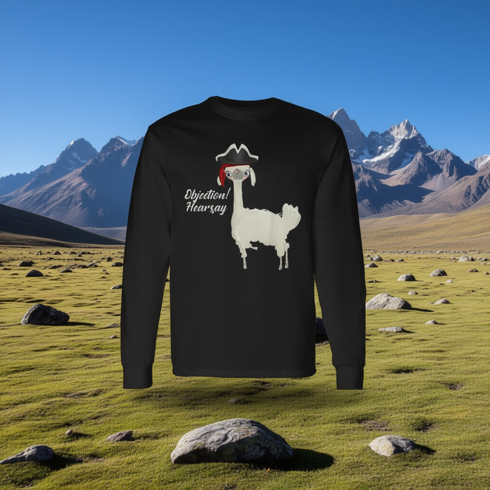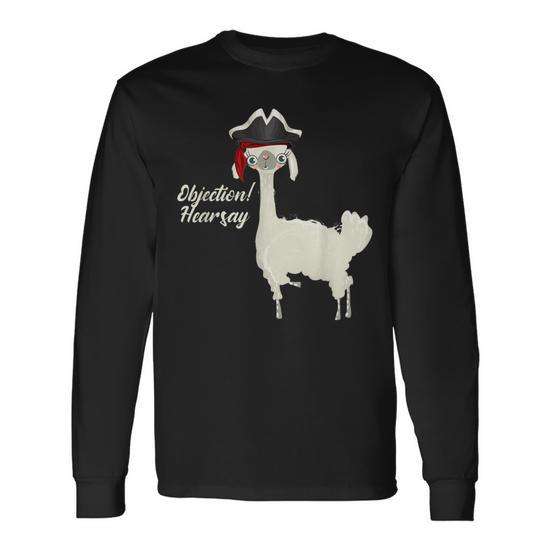 T-shirt a maniche lunghe Alpaca Objection Hearsay, unisex, taglia media per adulti, nera, con design divertente a tema animale