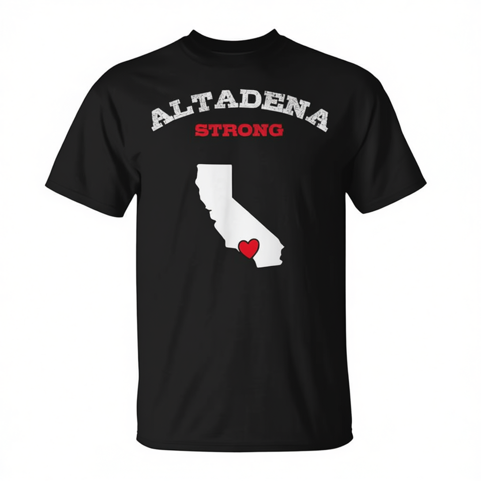 T-shirt Altadena Strong California nera unisex media