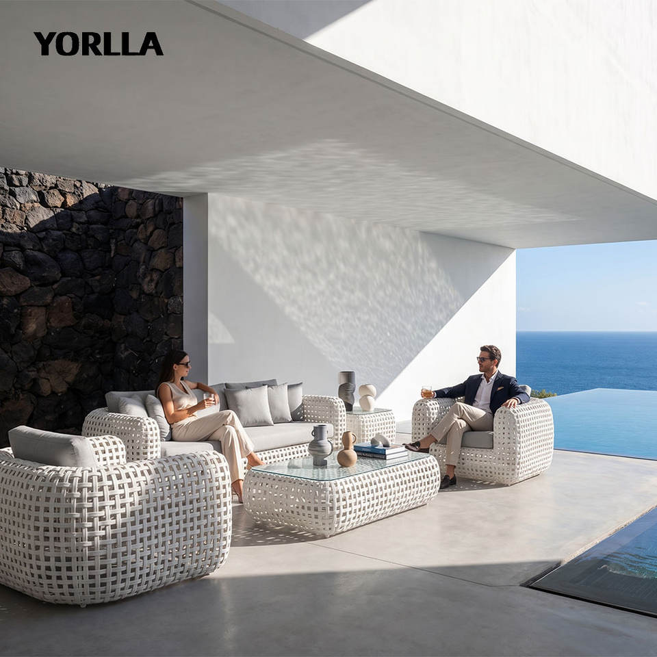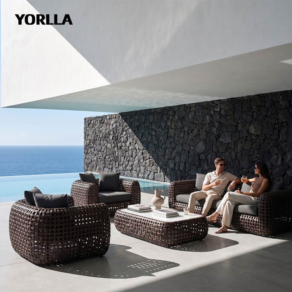 Telaio in alluminio Rattan mobili da cortile in Rattan divani moderni da esterno Set da giardino in Rattan Custom Set da giardino