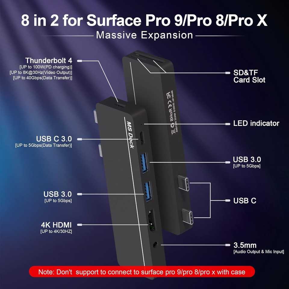Accessori per Surface Pro 9 in Alluminio, Hub HDMI 4K, USB C Thunderbolt 4 100W (Display+40Gbps+PD), Audio USB C, 2 Porte USB Compatibili