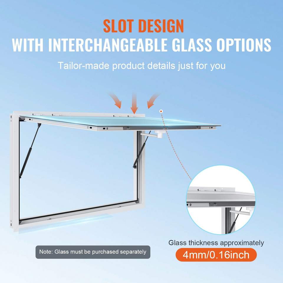 Sportello di Servizio in Alluminio 60x36 Pollici con Tenda e Gancio, Apertura a 85 Gradi per Food Truck e Chioschi
