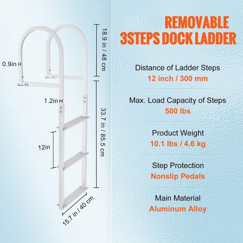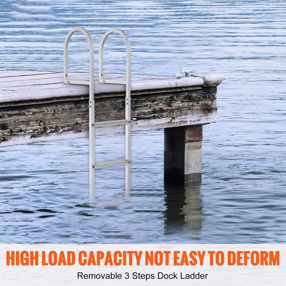 Scaletta a 3 Gradini in Lega di Alluminio per Pontone, Capacità di Carico 500 Libbre, Gradini Larghi 3.1 Piedi in Gomma Antiscivolo, Scaletta Rimovibile per Piscina