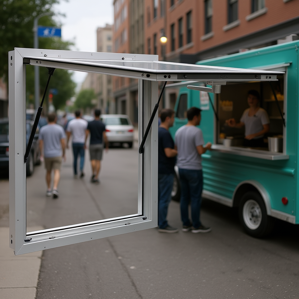 Aluminum Alloy 36 X 36 Inch Concession Window With Drag Hook For Food Trucks Outdoor Service Awning