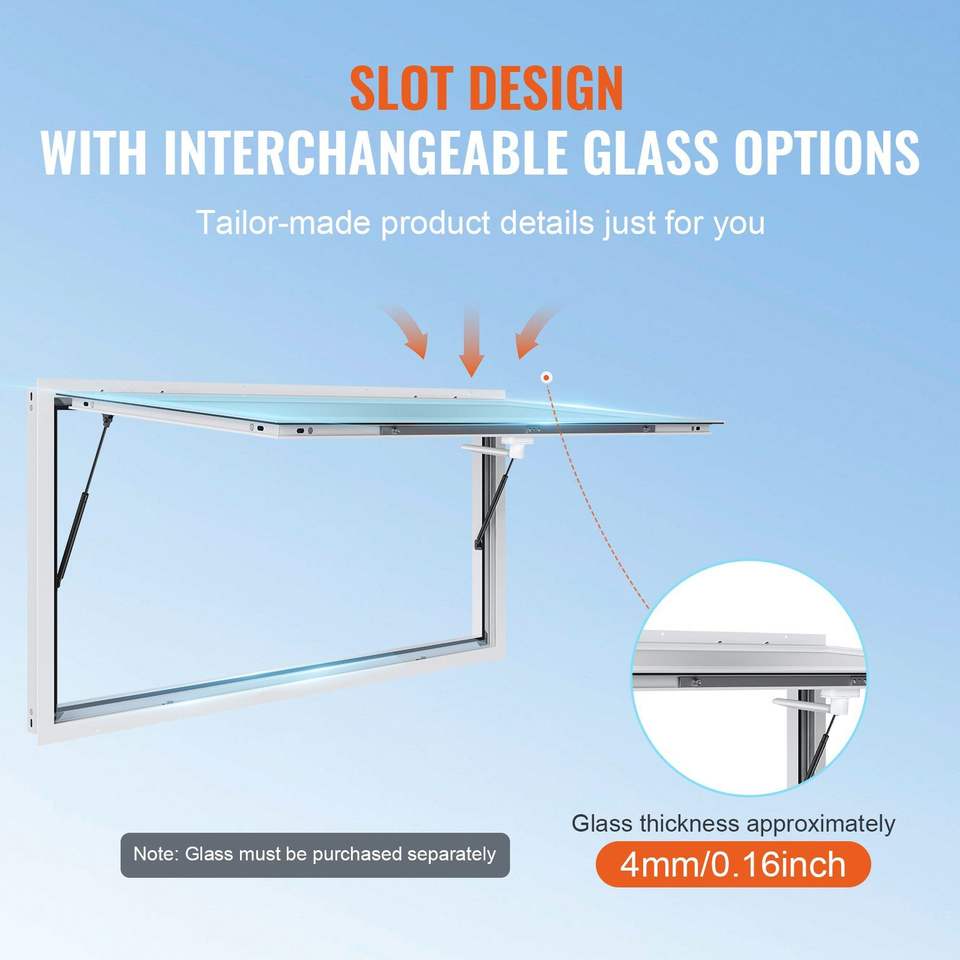 Finestra per Concessioni in Lega di Alluminio 64"x40" per Food Truck con Tenda, Gancio di Traino e Supporto a 85 Gradi