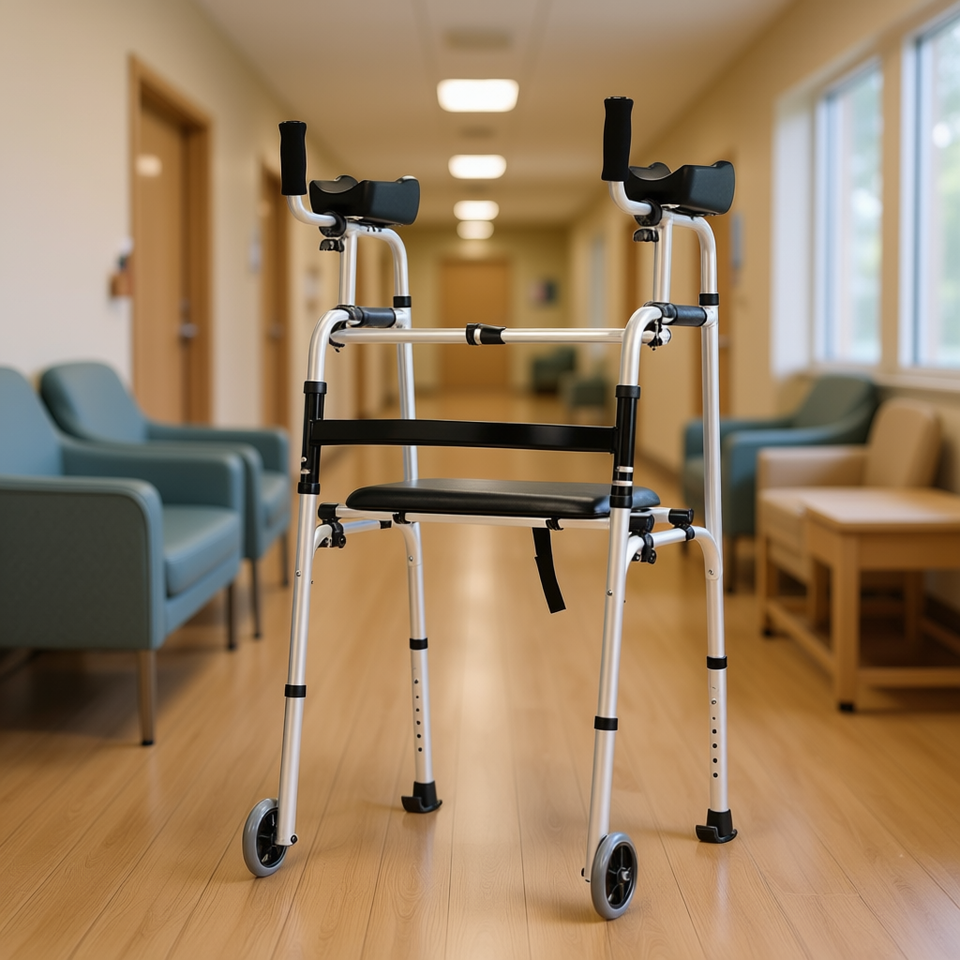 Aluminum Alloy Foldable Walker with Wheels CE Certified Caliper Brake for Rehabilitation and Mobility Assistance