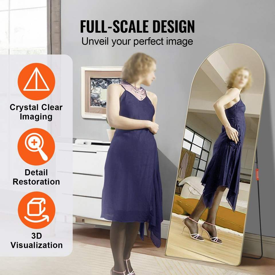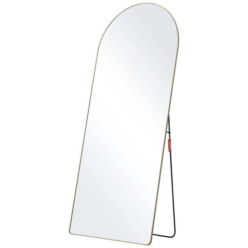 Specchio a Figura Intera con Cornice in Lega di Alluminio, 71 X 30, Grande, Autoportante e da Parete, con Supporto da Terra