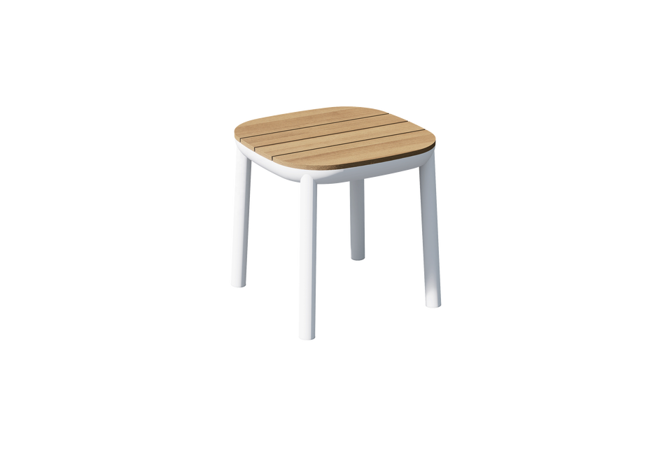 Tavolino da Esterno con Telaio in Lega di Alluminio e Piano in Teak (Resistente alle Intemperie), Durevole, Minimalista, Leggero e Facile da Trasportare
