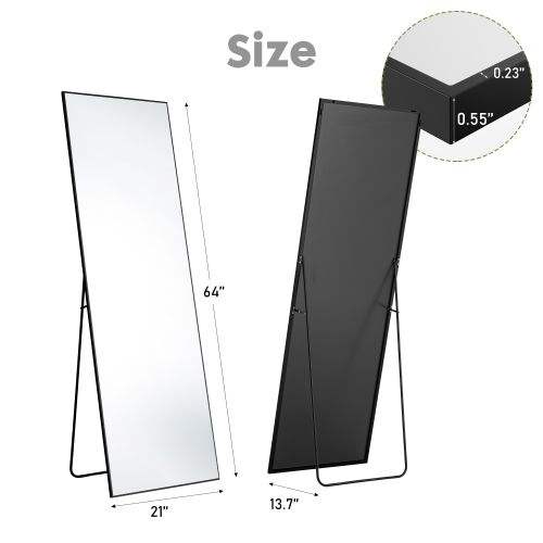 Specchio da Terra Rettangolare Nero con Cornice Sottile in Lega di Alluminio 21*64, Specchio da Parete Rettangolare Nero da 64 Pollici con Supporto a Muro