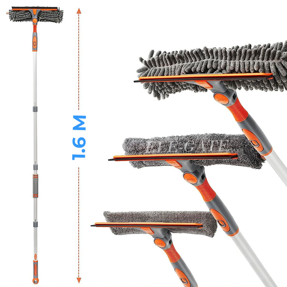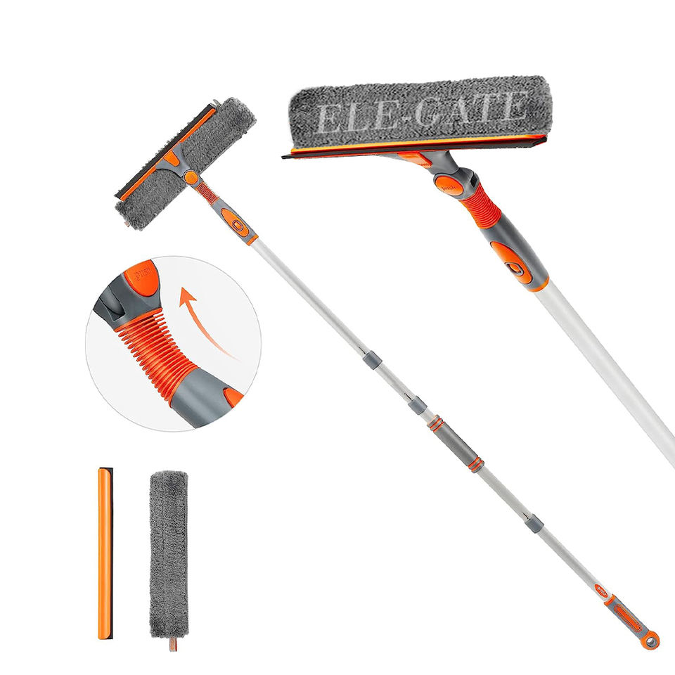 Kit di Pulizia per Finestre con Asta Telescopica in Alluminio, Strumenti per Pulizie Domestiche con Materiale Plastico Resistente