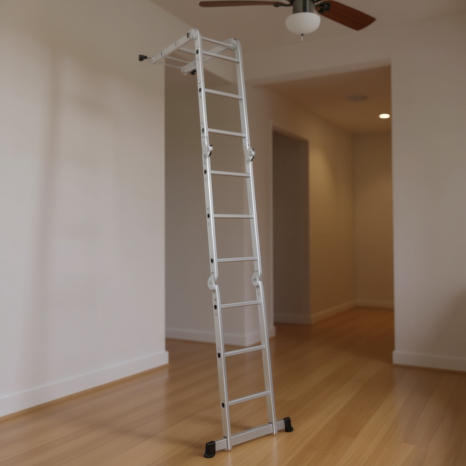 Scala Pieghevole in Alluminio 12.5FT 12 Gradini Tipo 1 Capacità 300 Libbre Uso Domestico Design Minimalista Ponteggio Combinato