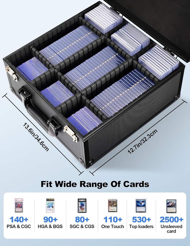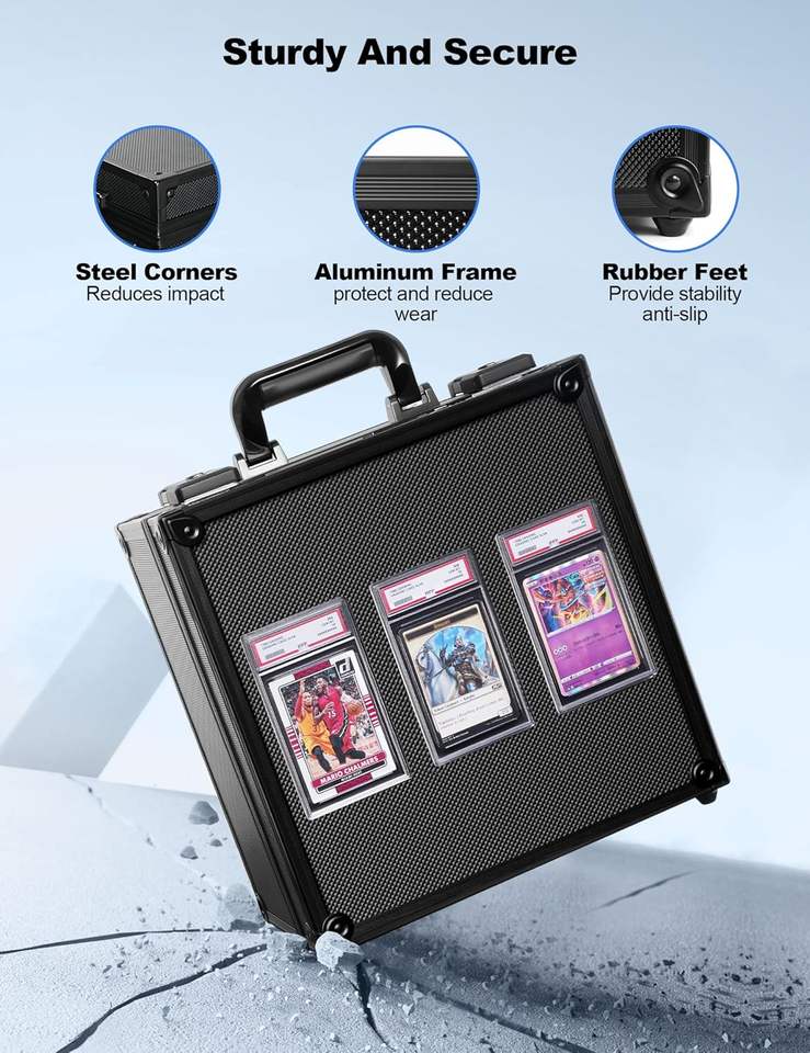 Scatola porta carte in alluminio per carte graduate, contiene oltre 170 slab GMA e oltre 680 toploader, contenitore riutilizzabile a 4 file per carte sportive 3x4 da 35pt