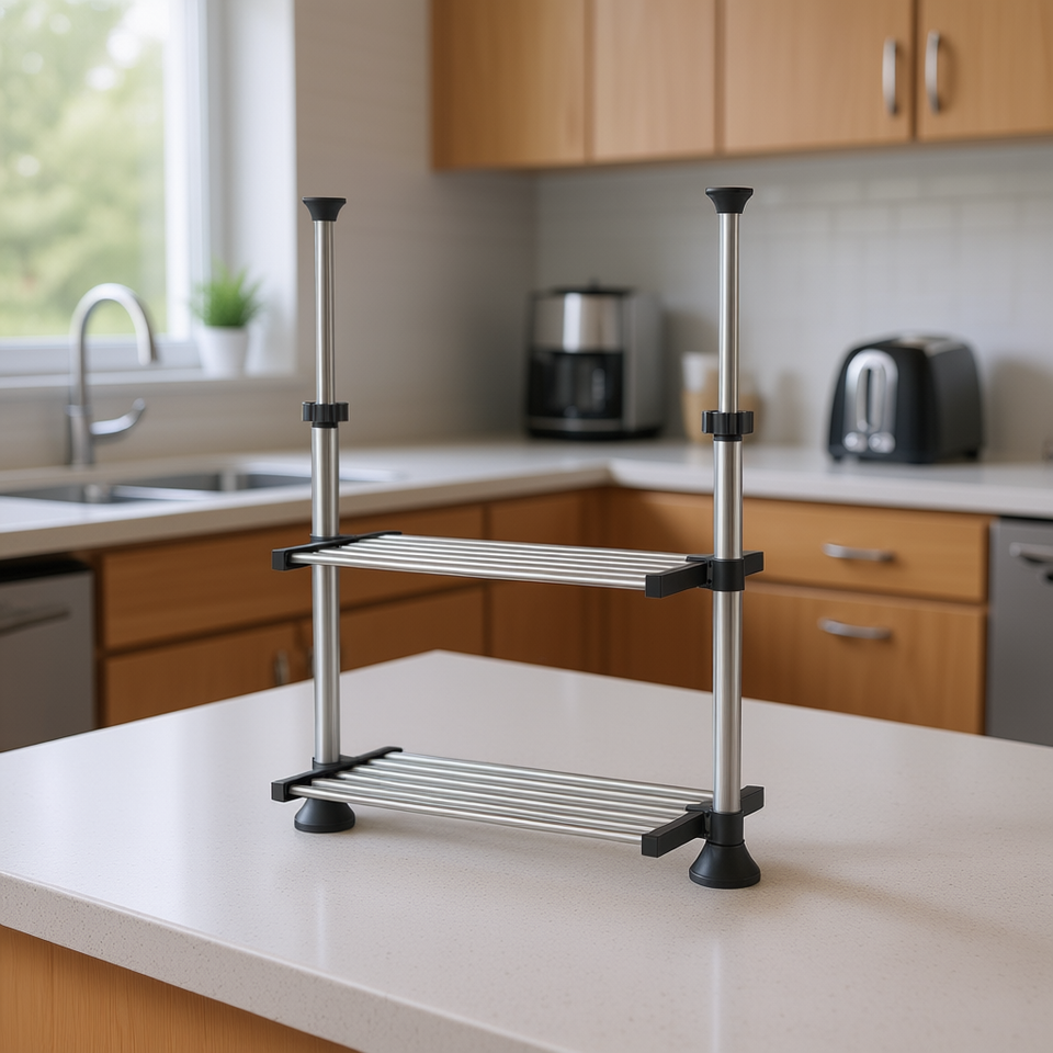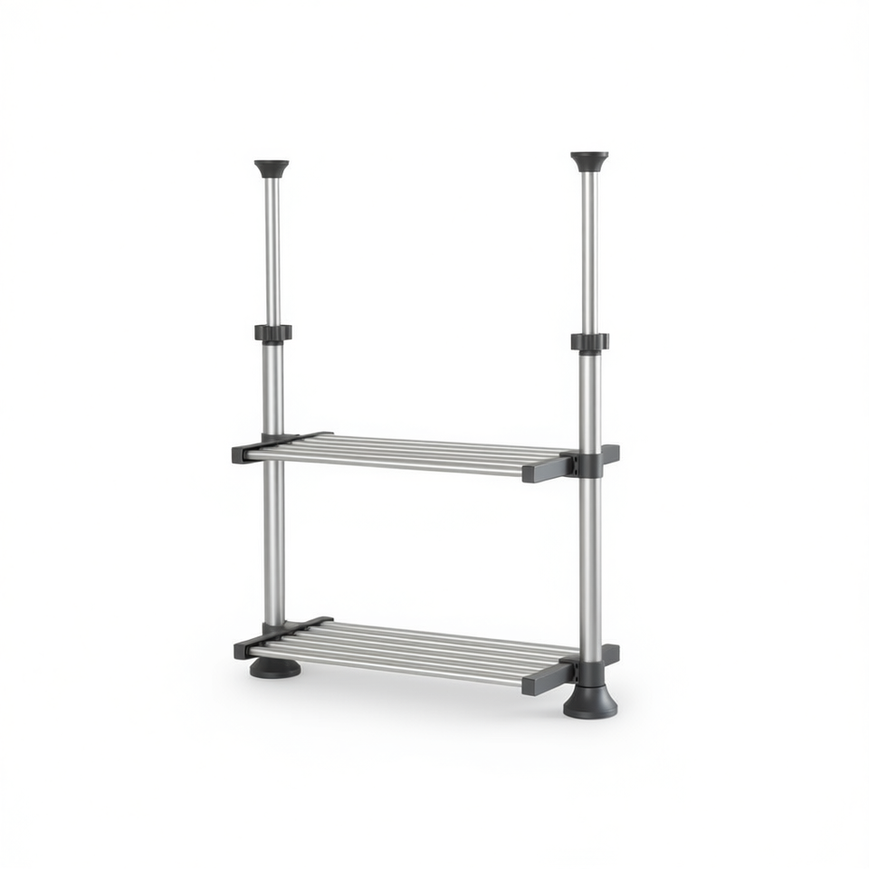 Scaffale da Cucina in Alluminio 50x25x(50-70)cm, Soluzione di Stoccaggio Autoportante a 2 Ripiani
