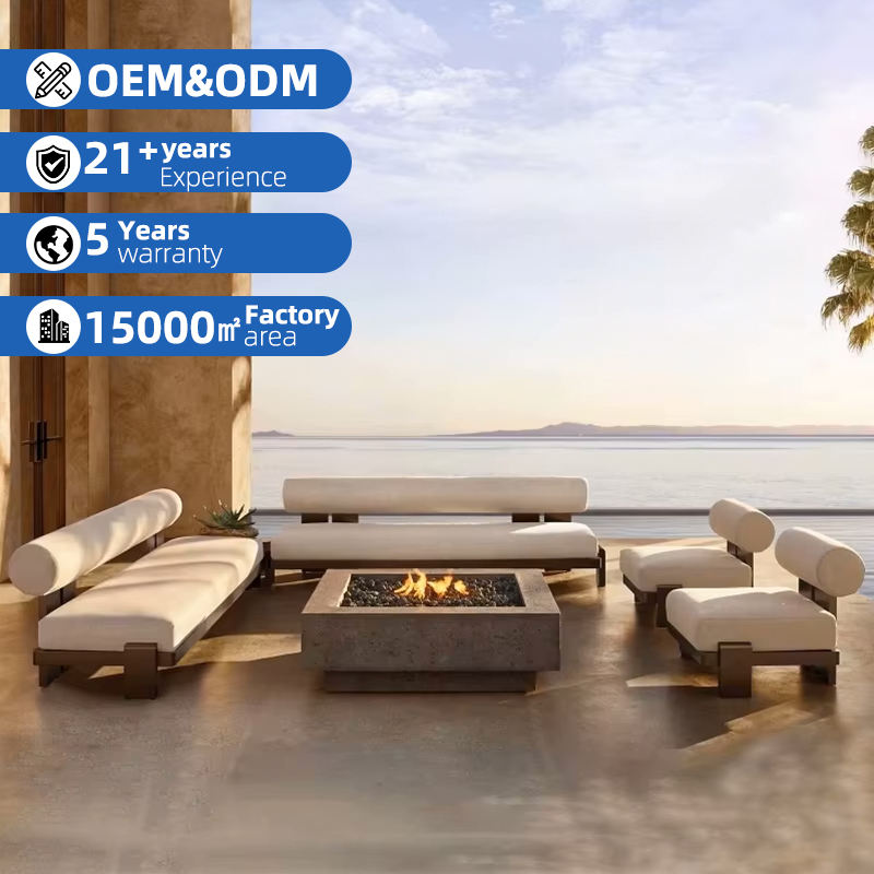 Set di Divani da Esterno Moderni in Alluminio - Divano da Giardino Impermeabile in Metallo Nero per Cortili e Terrazze di Hotel