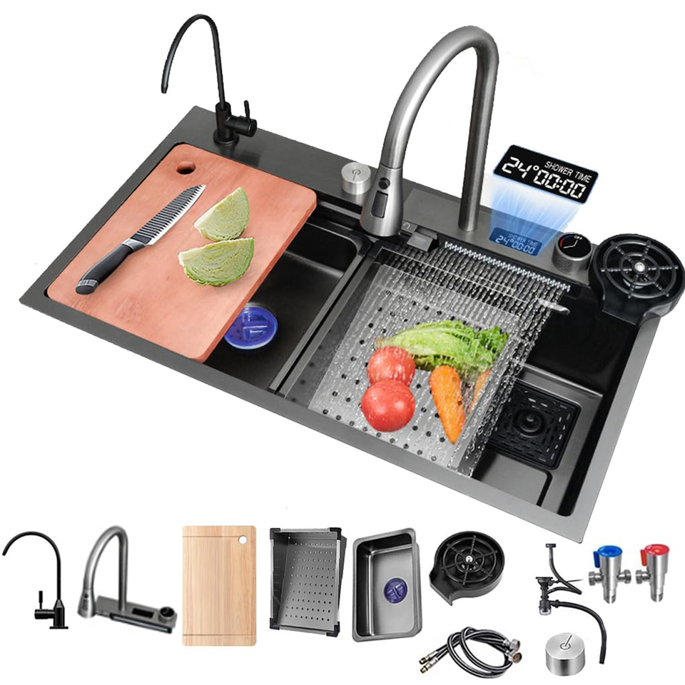 Aluminum Smart Faucet Nano Coated 304 201 Sink Kitchen Multifunction Sink Handmade Scratch Oil Proof Smart Kitchen Sink Tub