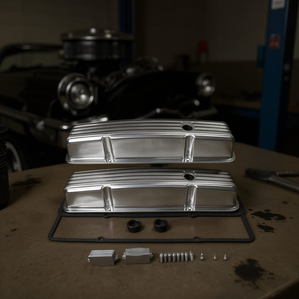 Aluminum Tall Finned Valve Covers with Bolts for Chevrolet Small Block 283 302 305 327 350 400 1958-1986 Models
