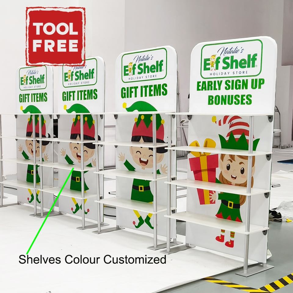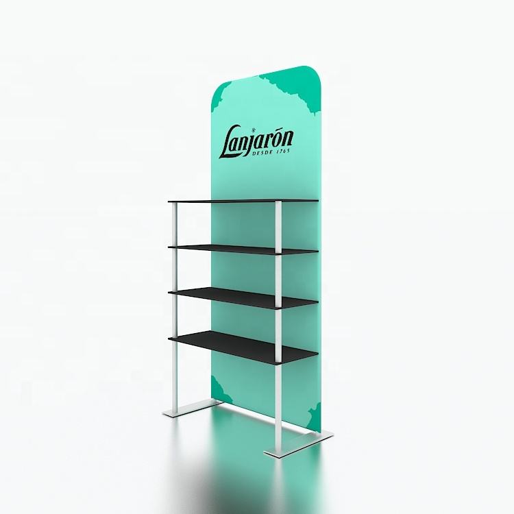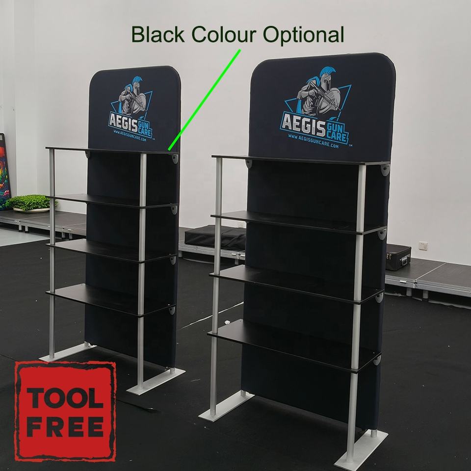 Aluminum Tube Stretch Fabric Tradeshow Event Promotional Quick Build Reusable Shelf Display Stand Rack