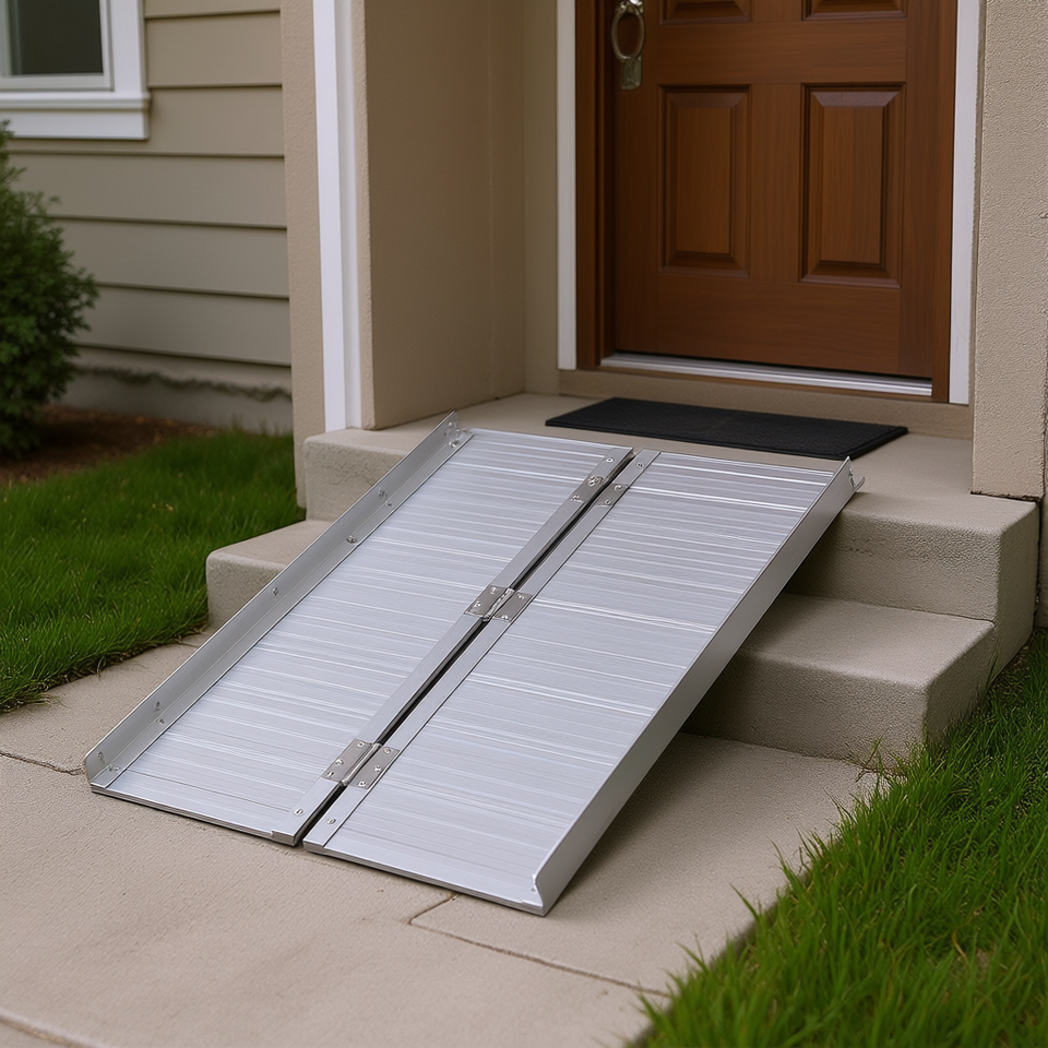 Aluminum Wheelchair Ramp 4FT Folding Non Slip Surface Threshold Ramp Transition Plates for Home Use