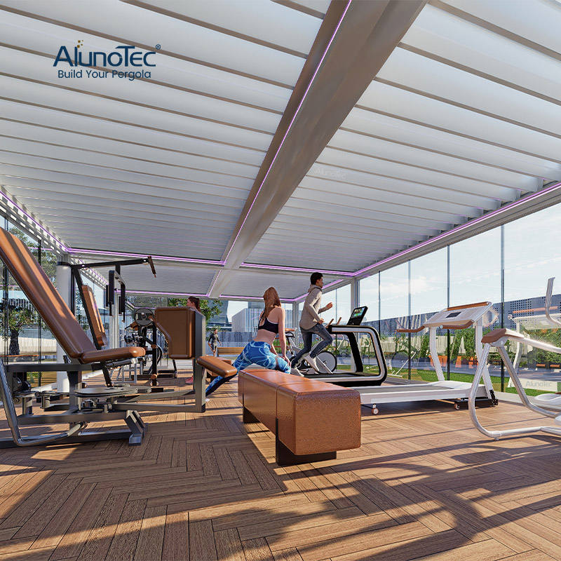 Pergola Motorizzata AlunoTec in Alluminio da Esterno Sistema di Ombreggiatura Automatico per Esterni Copertura per Ristoranti Tetto a Lamelle Orientabili con Luce
