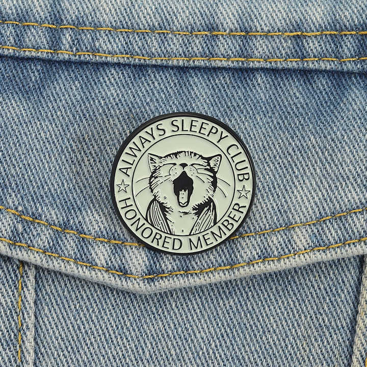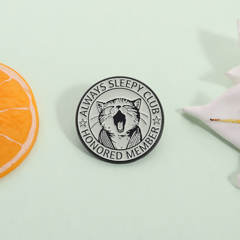 Spilla Smaltata Always Sleepy Club, Simpatico Gatto Stanco, Distintivo per Membro Onorato, Gioiello per Zaino, Regalo per Amici, Vendita all'Ingrosso