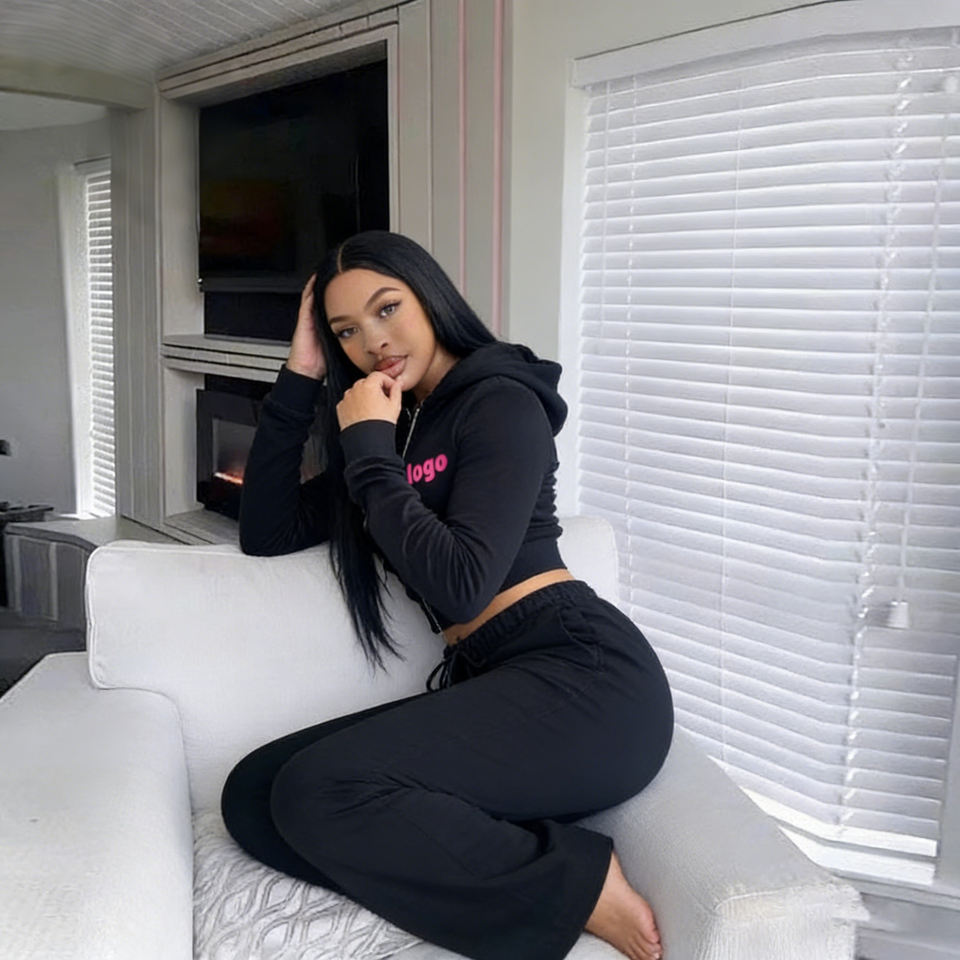 Completo Sportivo da Donna Alxin con Logo Personalizzato, Felpa con Cappuccio e Pantaloni in Cotone, Set Due Pezzi Autunnale