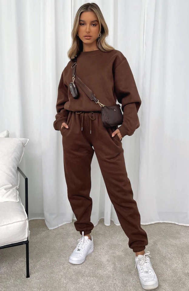 Completo da jogging da donna Alxin con logo frontale, nuovo, taglie forti, 2 pezzi, in maglia tinta unita, casual, in pile, per autunno