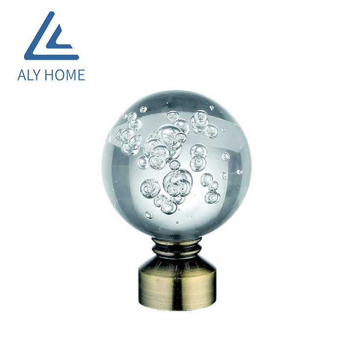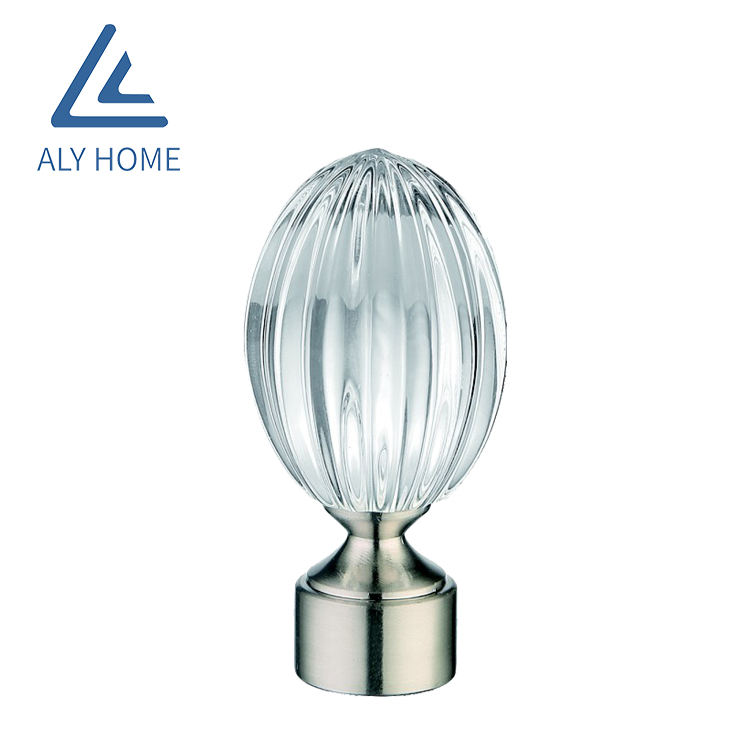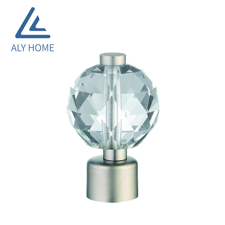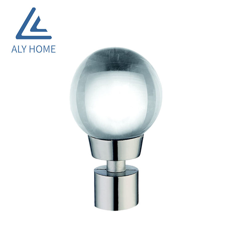 Aly decorazione per la casa durevole asta di tenda in alluminio singolo Finial moderno cristallo di vetro Design personalizzabile lunghezza del colore per le tende