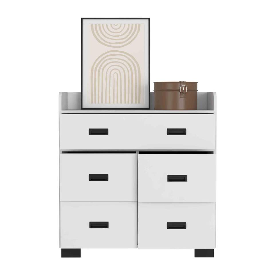 Alyn comò bianco con quattro gambe quattro cassetti tra cui un doppio cassetto superiore