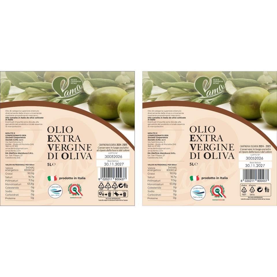 Olio Extravergine di Oliva Ama – Confezione da 5 litri in latta - Qualità Premium, Gusto Intenso e Fresco