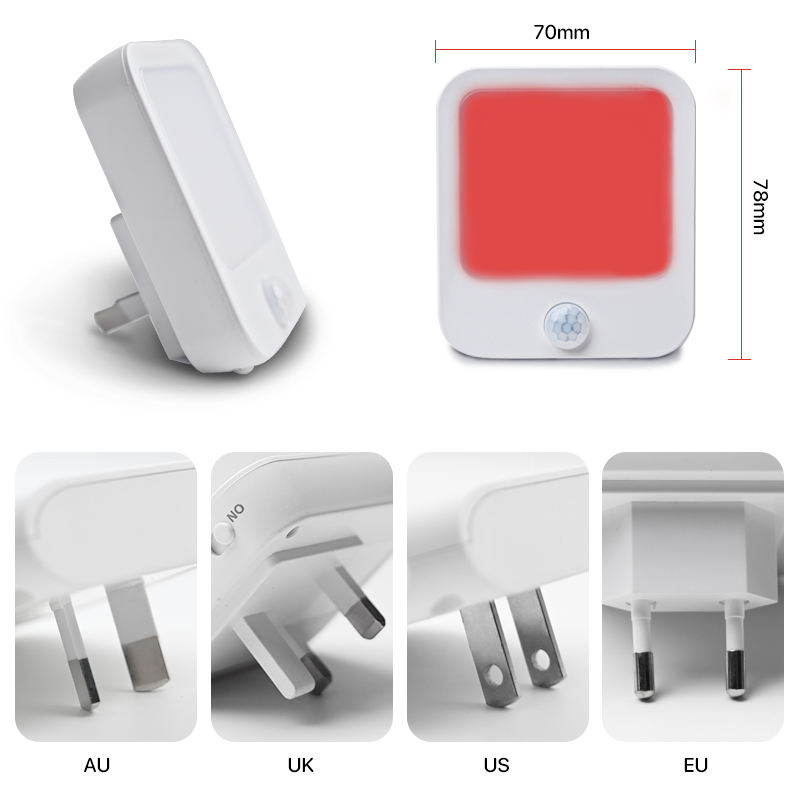 YARRAE Luce notturna LED sensore movimento YR-GYD-03, 0,5-1W, 3000K-6000K, AC100-240V, US/EU, PIR+luminosità, per comodino