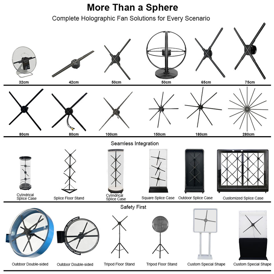 Incredibile Effetto Display 3D 4K 2500 Nits, Sistema di Ventole Olografiche Multi-Misura 65-180cm per Display a Giunzione Continua, Ventola Olografica 3D