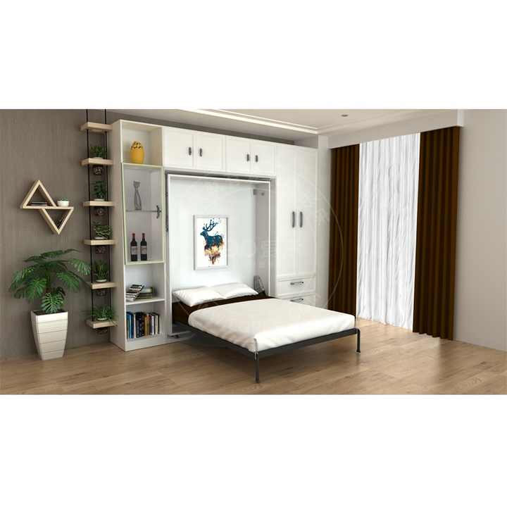 Amazing Rotating More Durable Smart Vertical Wall Bed With Bookshelf and Smart Hidden Table Popular in Single Apartment
