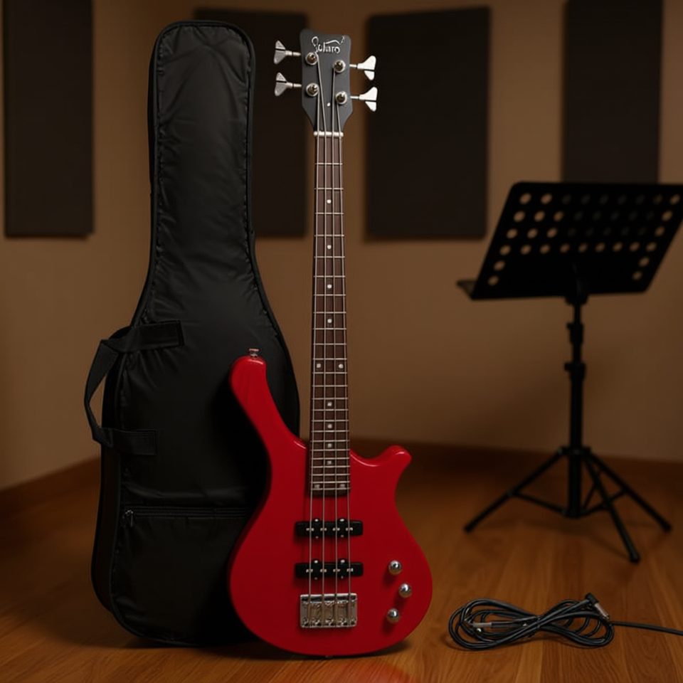 Amazonglarry Electric Bass Guitar 36in Mahogany Body Ss Pickups Maple Neck Red With Bag