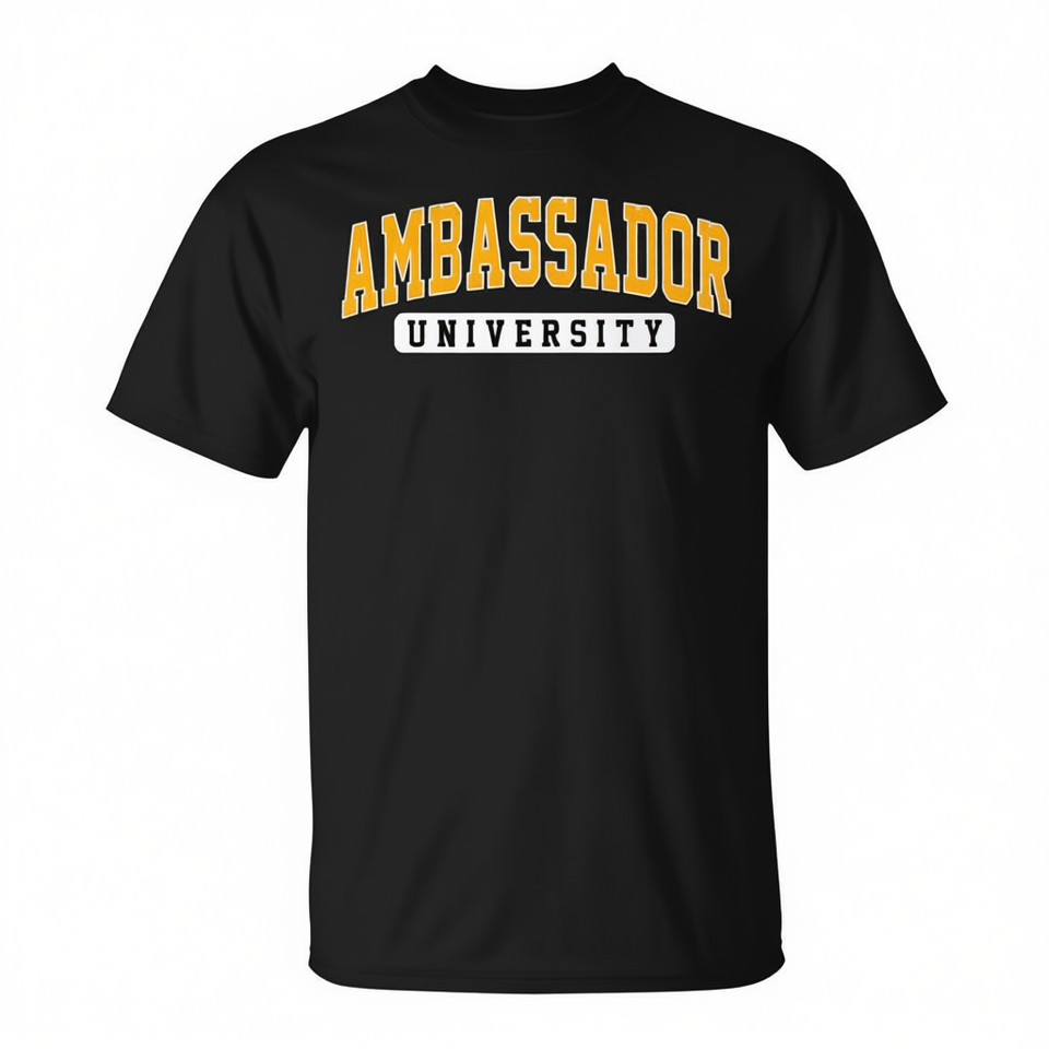T-shirt Ambassador University Arch per uomo e donna in stile vintage