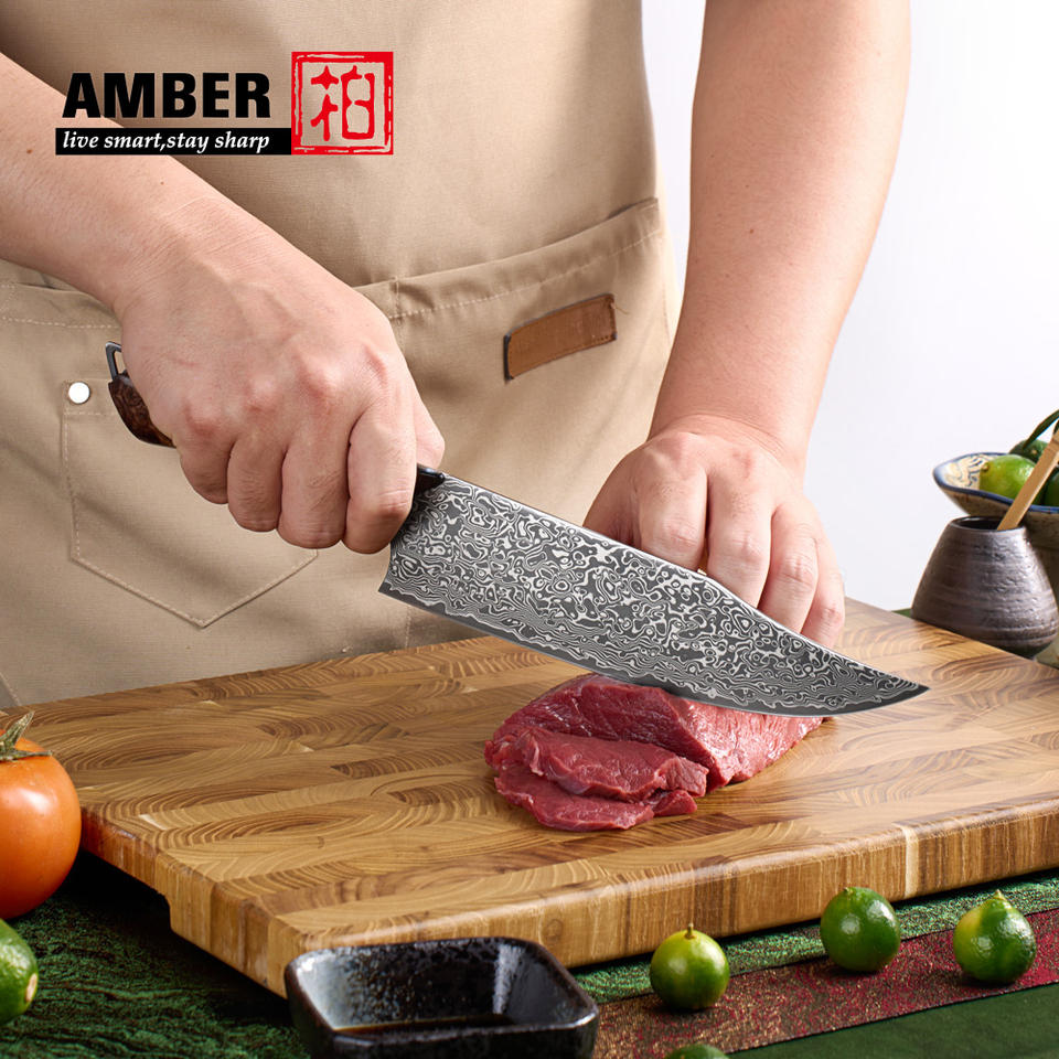 Set di coltelli da cucina Amber in acciaio Damasco VG10 a 67 strati, 1-5 pezzi, con coltello da chef, mannaia, Santoku, coltello da disosso, set di coltelli giapponesi
