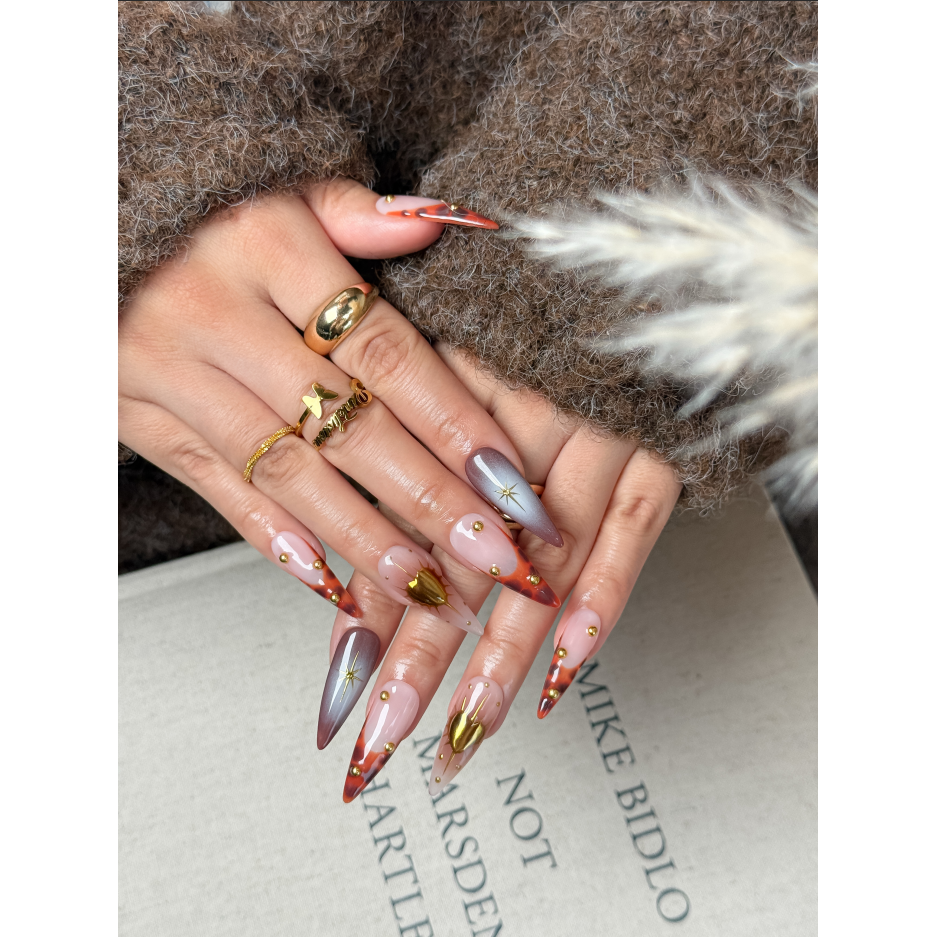 Unghie Finte Amber Eclipse: Design Elegante e Alla Moda per Appassionati di Nail Art