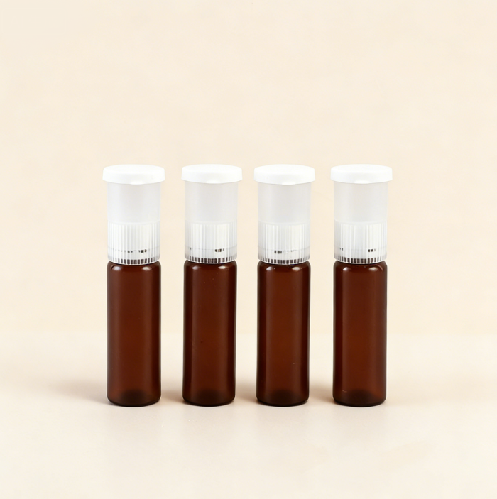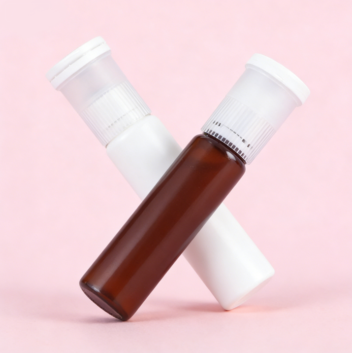 Flacone in Plastica Ambrata a Doppia Camera per Liquidi 10ml 20ml 30ml, Bottiglia per Farmaci Liquidi con Tappo Antimanomissione