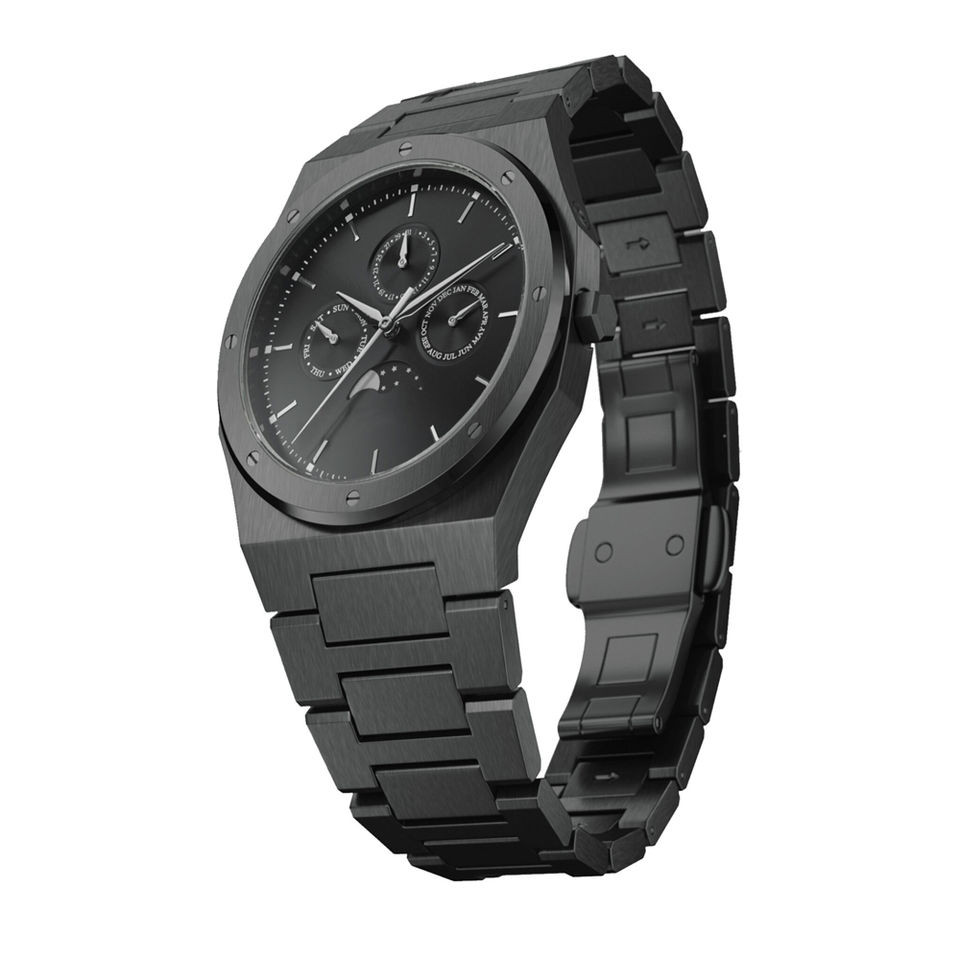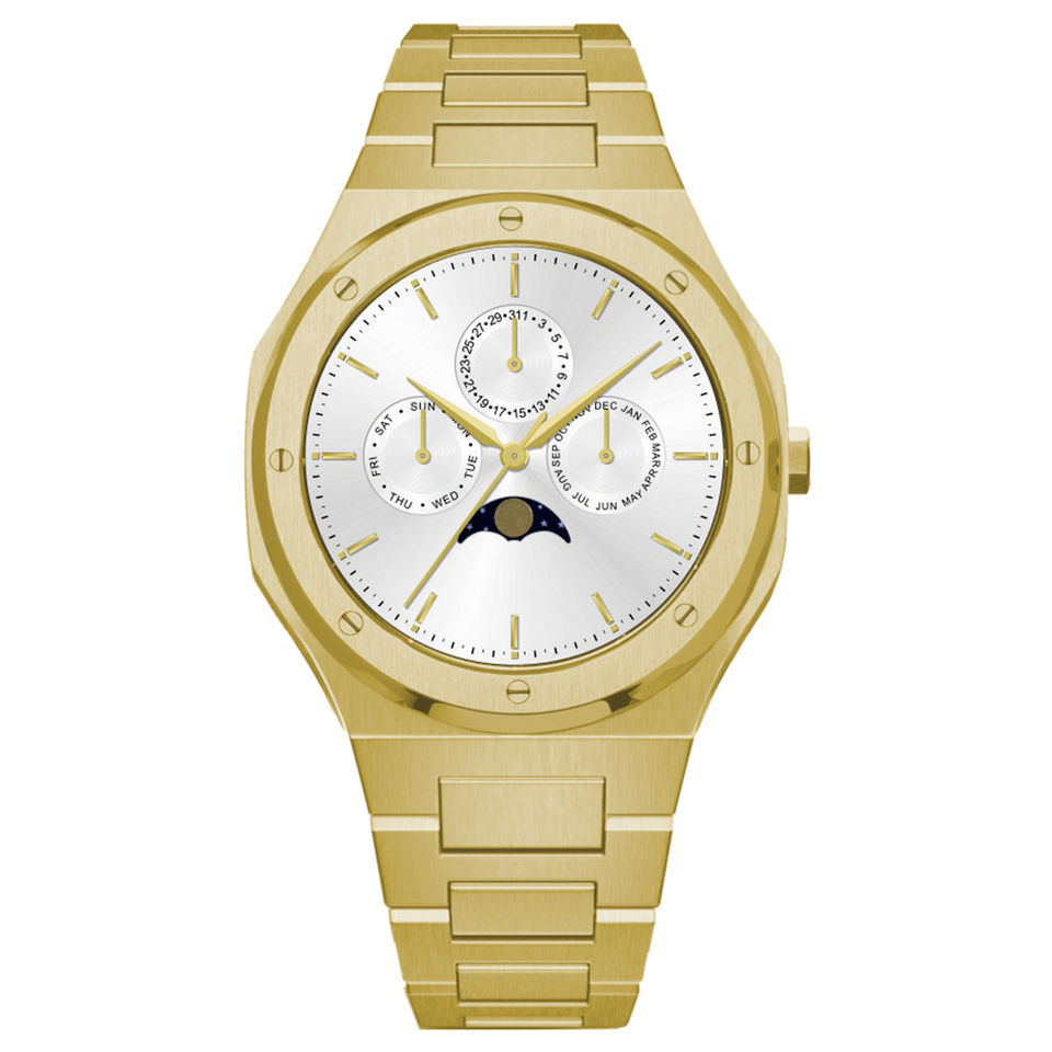 Cronografo, Giorno/data, Fase della luna, Fascia oraria multipla, Non specificato, Resistente all'acqua, Impermeabile, Piccolo tre aghi