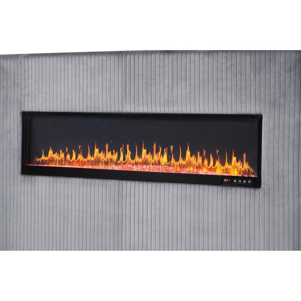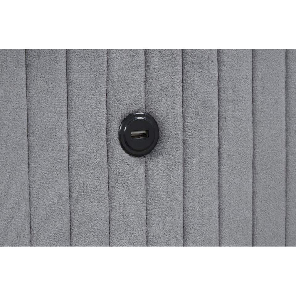 Letto Matrimoniale con Illuminazione Ambientale in Velluto Grigio, Letto Imbottito in Legno con Caratteristiche Eleganti
