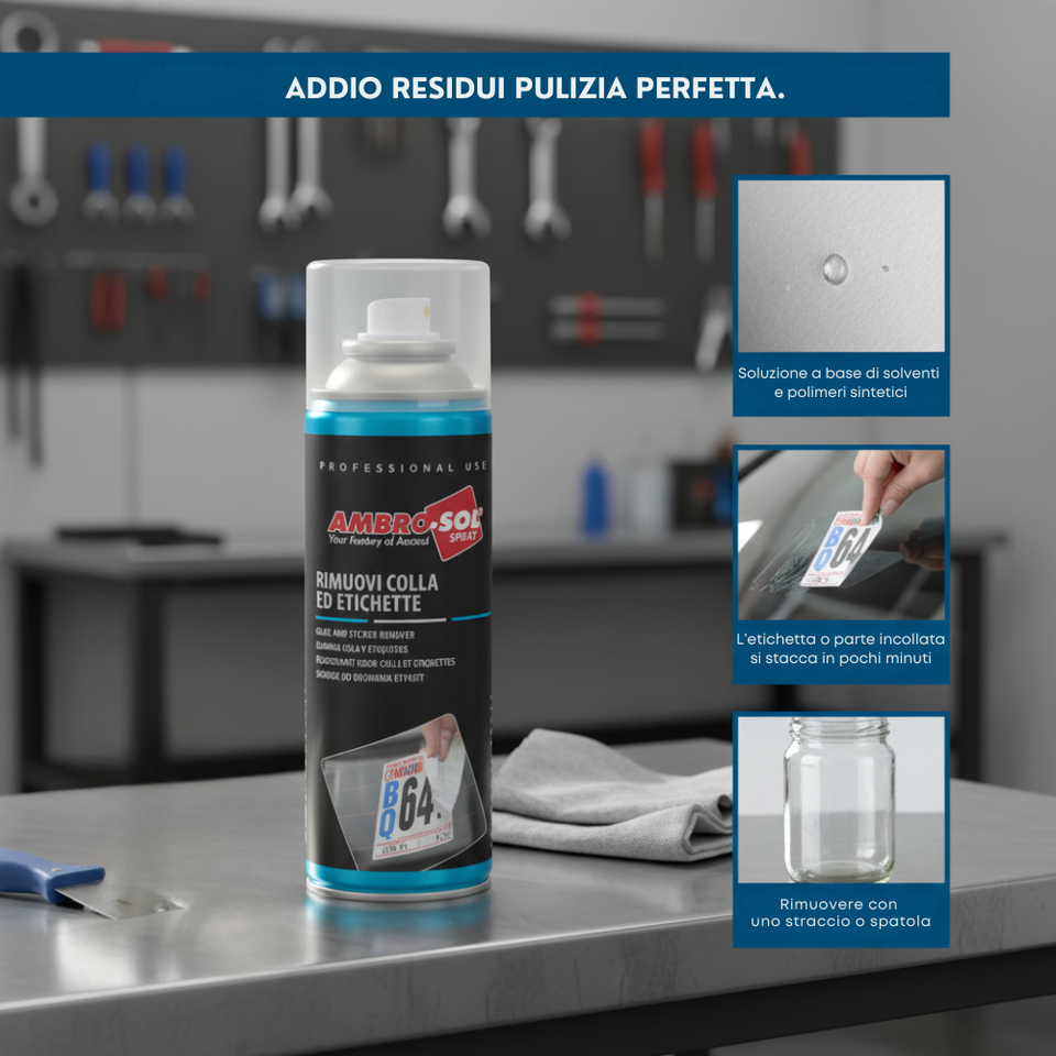 Ambro-sol 200 ml Spray Detergente Commerciale Efficace Rimuovi Etichette e Colla