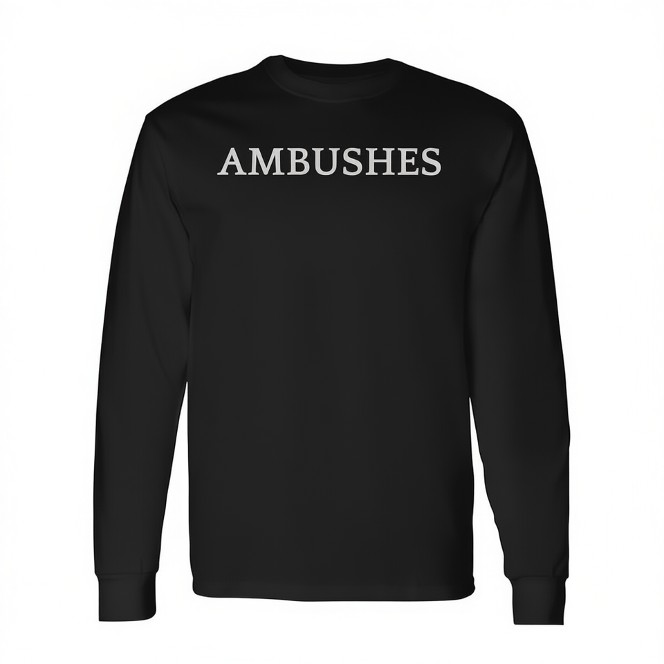 T-shirt a maniche lunghe con scritta Ambushes English Word, nera, taglia unisex per adulti