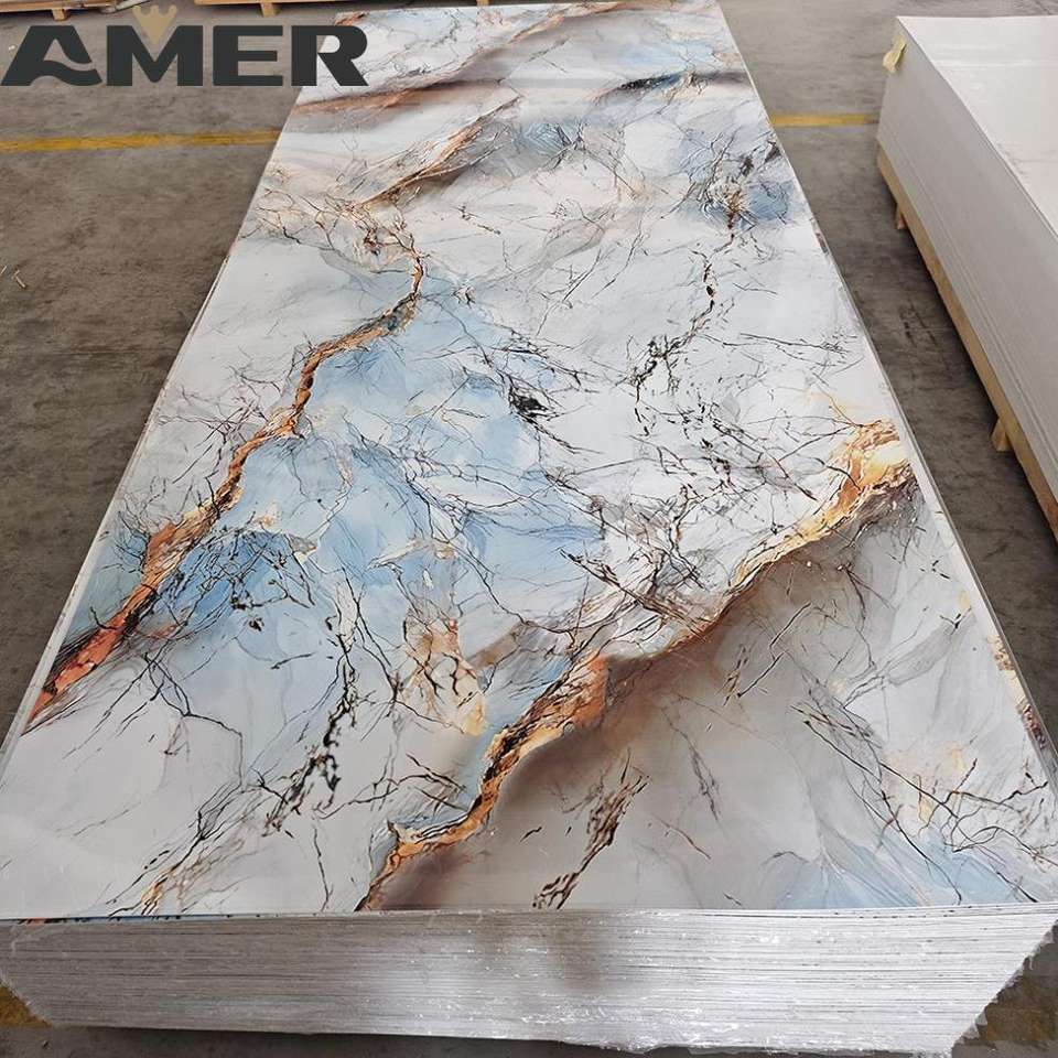 Pannello Murale 3D in PVC UV Effetto Marmo, Nuovo Modello OEM Amer, Stampa 3D, Ecologico, Bellissimo Motivo per Parete TV